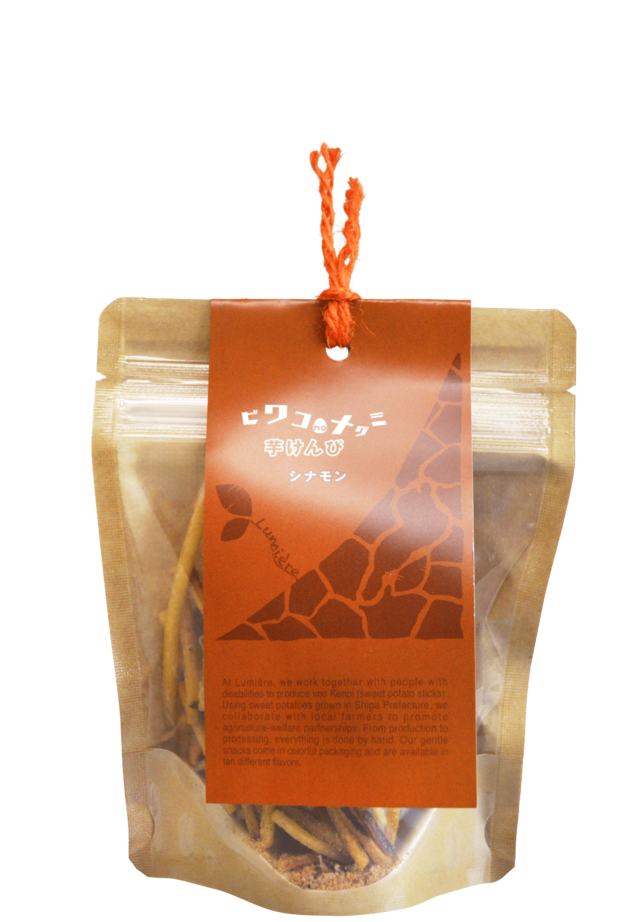 商品名:ビワコノメグミ芋けんぴ(シナモン) 内容量:40g 原材料:さつまいも(滋賀県産)、植物性油脂、てんさい糖、シナモンシュガー(グラニュー糖、シナモン)、塩キャラメルパウダー(水あめ、加糖練乳、加糖脱脂練乳、微粒二酸化ケイ素、香料含む)(一部に乳成分・大豆を含む) 保存方法:直射日光・高温多湿を避け常温で保存してください 製造・販売者:NPO法人 ルミエル ■栄養成分表示(100g当たり)推定値 熱量 507.1kcal たんぱく質 1.2g 脂質 21.6g 炭水化物 77.1g 食塩相当量 0.2g